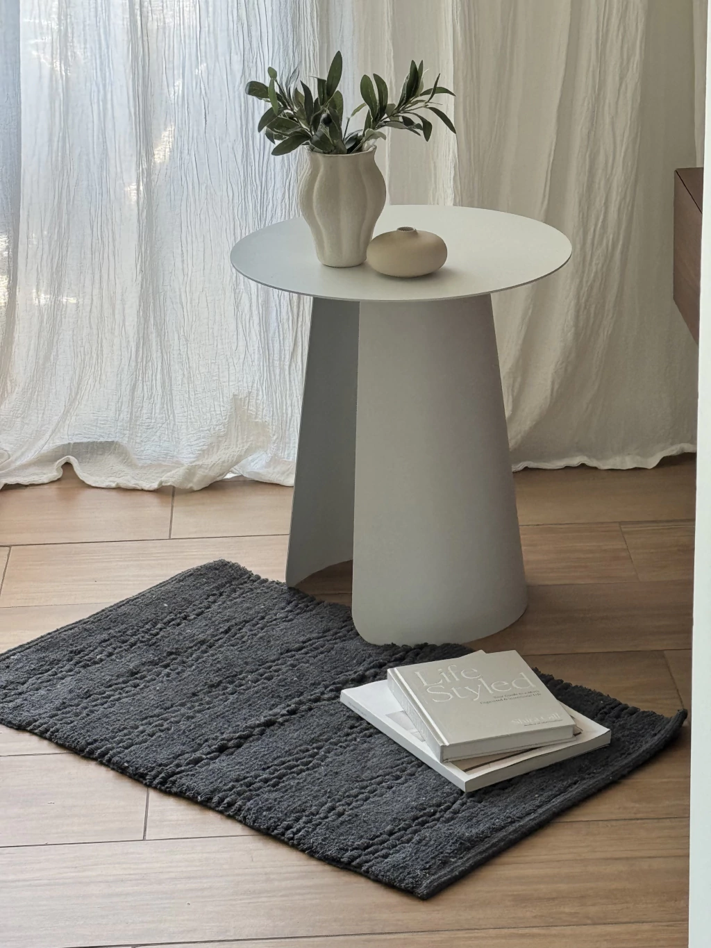 Alfombra Gris oscura, perfecta para dormitorio, living o entradas. 100% algodón. Importada de India. Medidas aproximadas: 50x80 cm Cuidados: Lavado a temperatura fría, no blanquear con cloro, planchado a temperatura tibia, secado a máquina baja temperatura, no en caliente. Las imágenes son a modo de ilustración