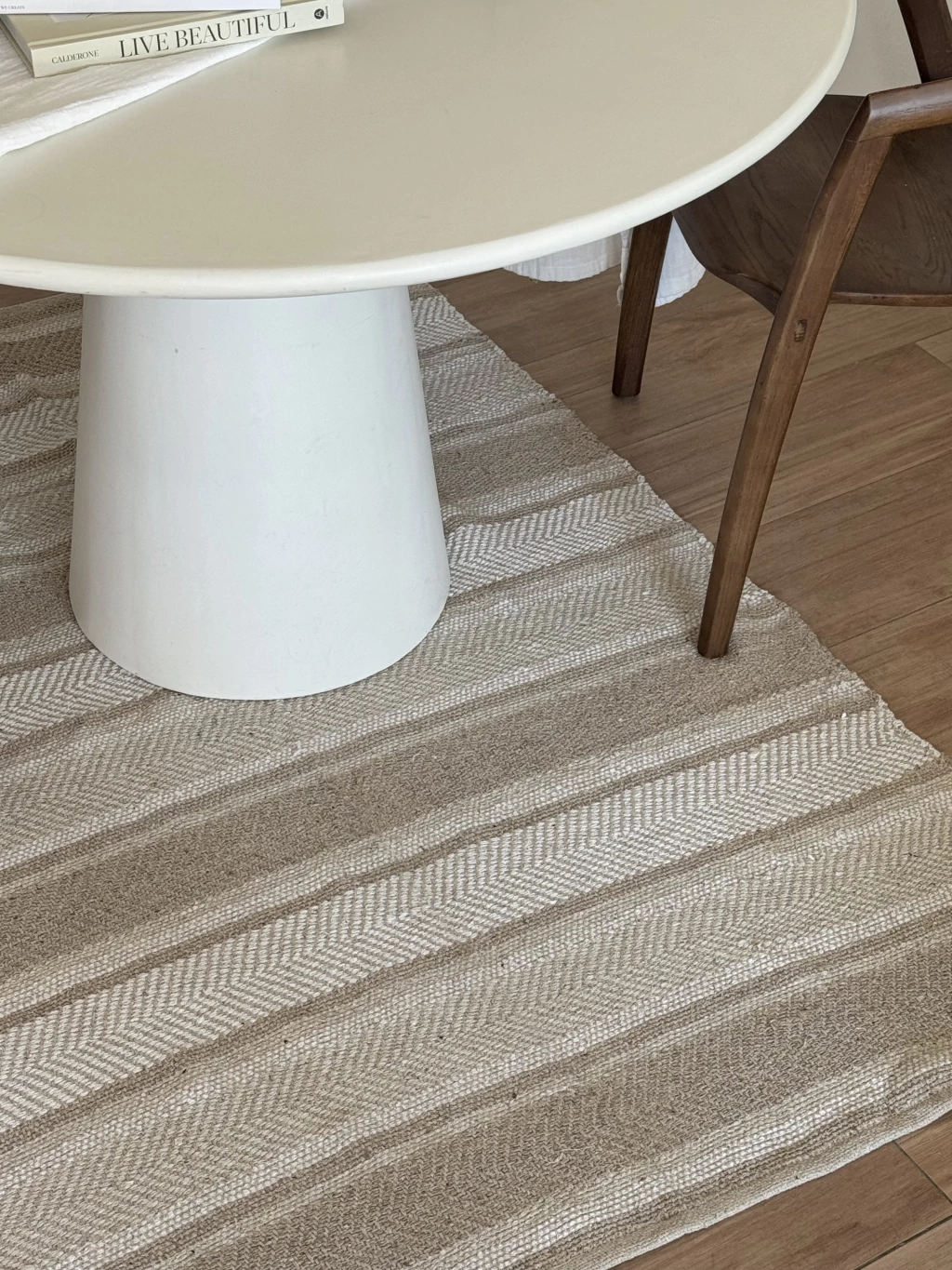 Alfombra con diseño exclusivo de líneas, perfecta para tu dormitorio o living. Importada de India. Medidas aproximadas: 120x170 cm Cuidados: Lavado a temperatura fría, no blanquear con cloro, planchado a temperatura tibia, secado a máquina baja temperatura, no en caliente. Las imágenes son a modo de ilustración