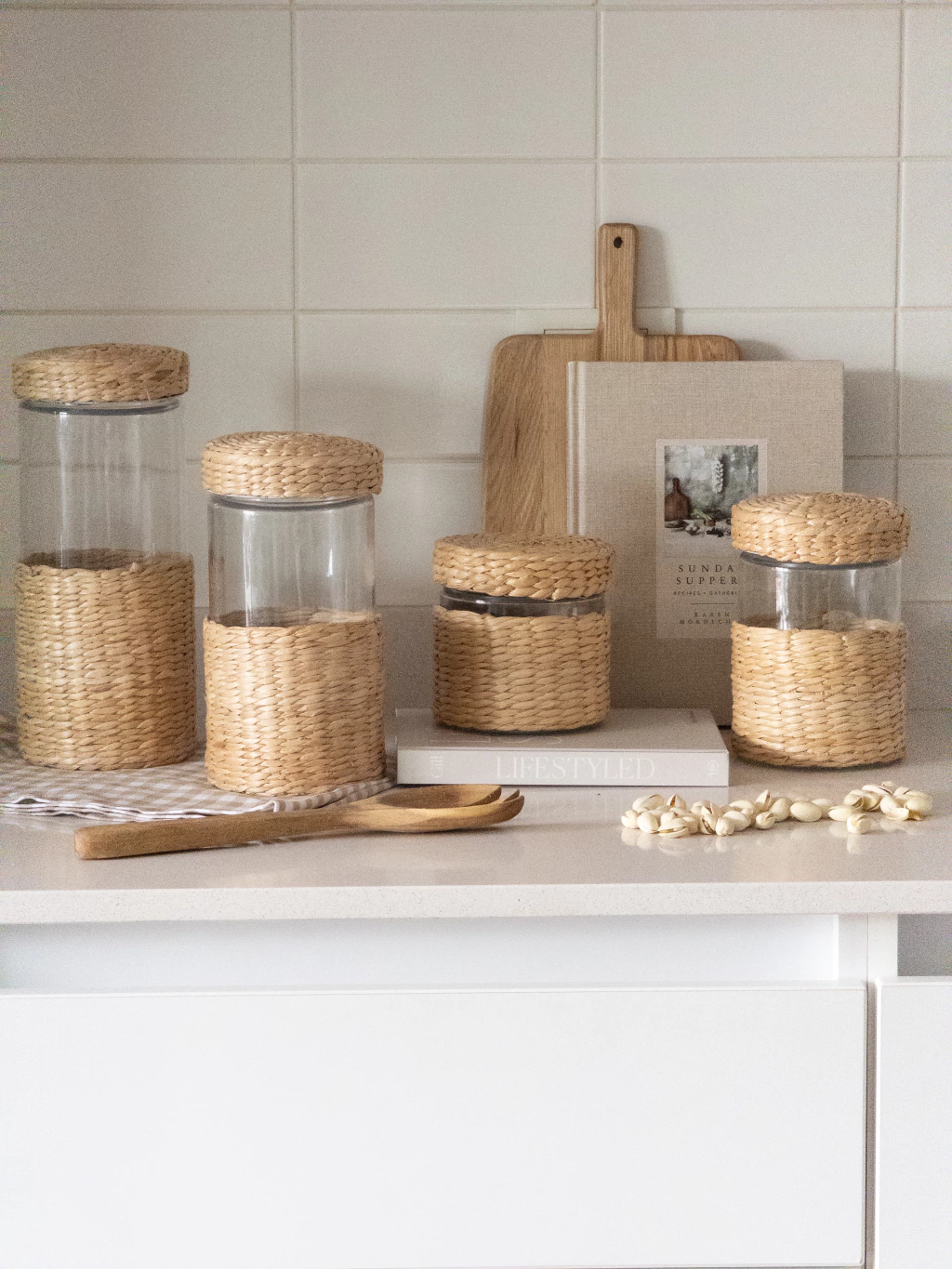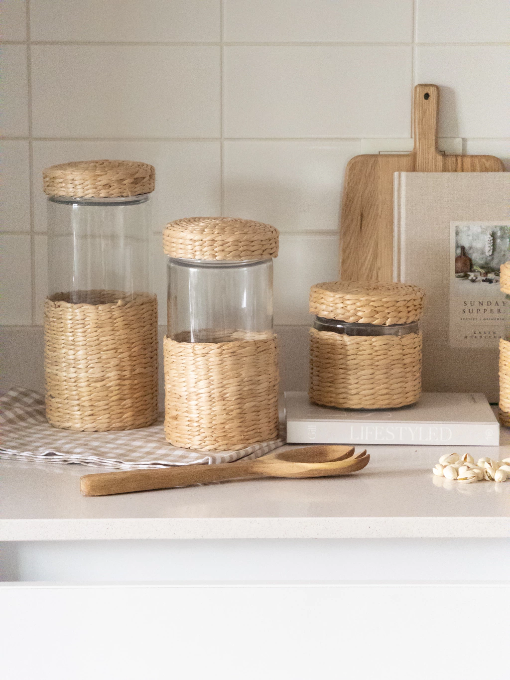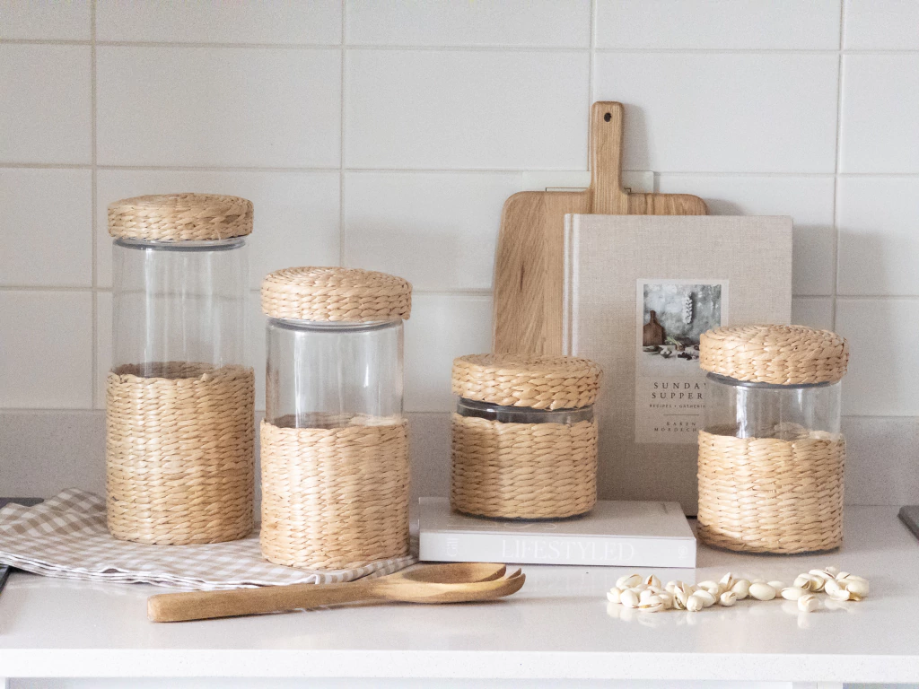 Frasco de vidrio. ideal para conservar y organizar alimentos, especias o pequeños objetos en tu cocina o despensa.