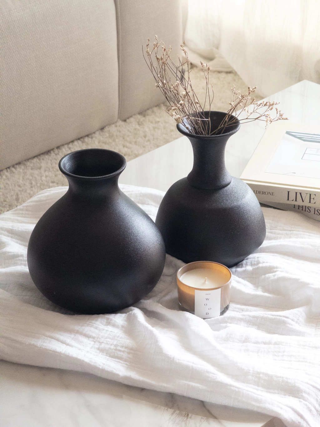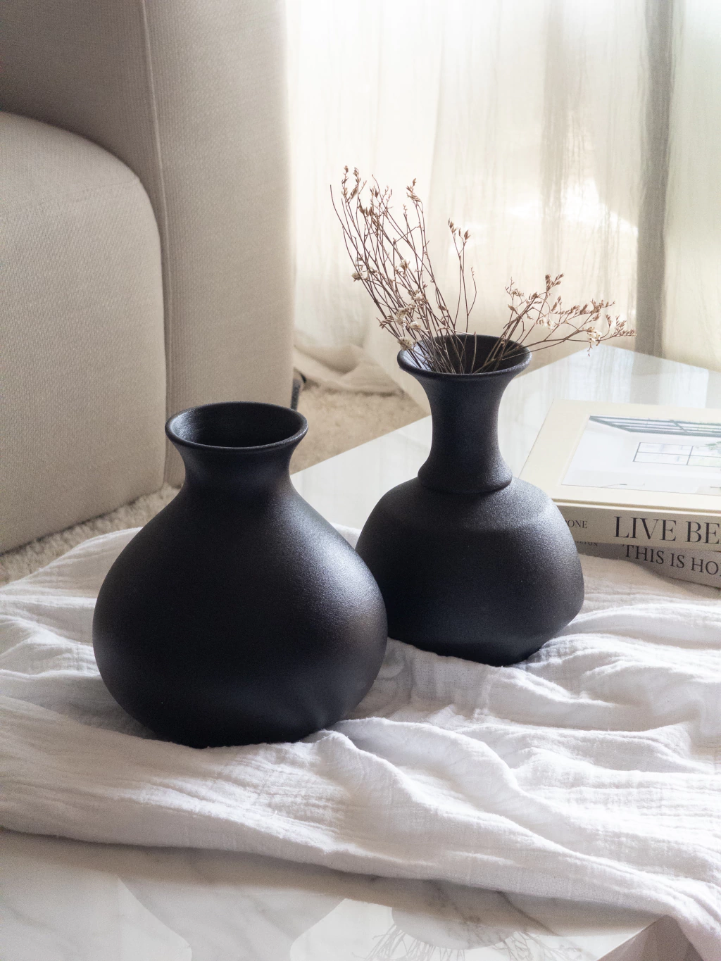 Jarrón decorativo color negro de cerámica. Ideal para flores secas o simplemente como objeto decorativo.