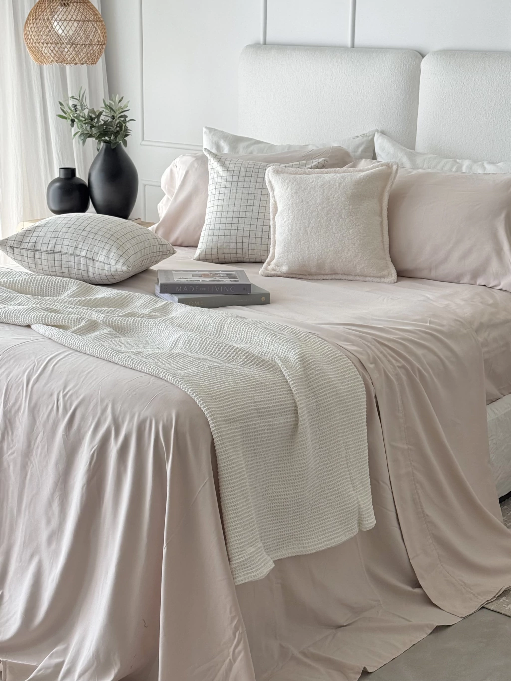 Juego de sábanas con festón en el embozo, king, de color Nude. Composición 100% poliéster. Su tela suave y resistente ofrece descanso placentero.