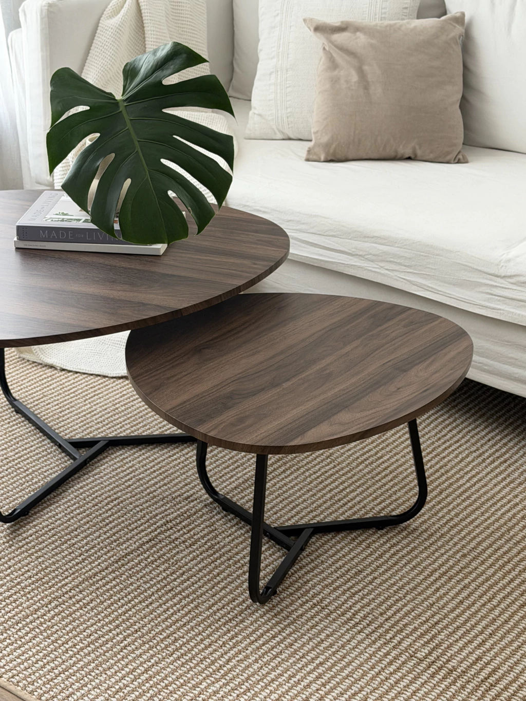 Con una base de hierro resistente y superficies de madera. Perfecta para optimizar espacios con estilo.