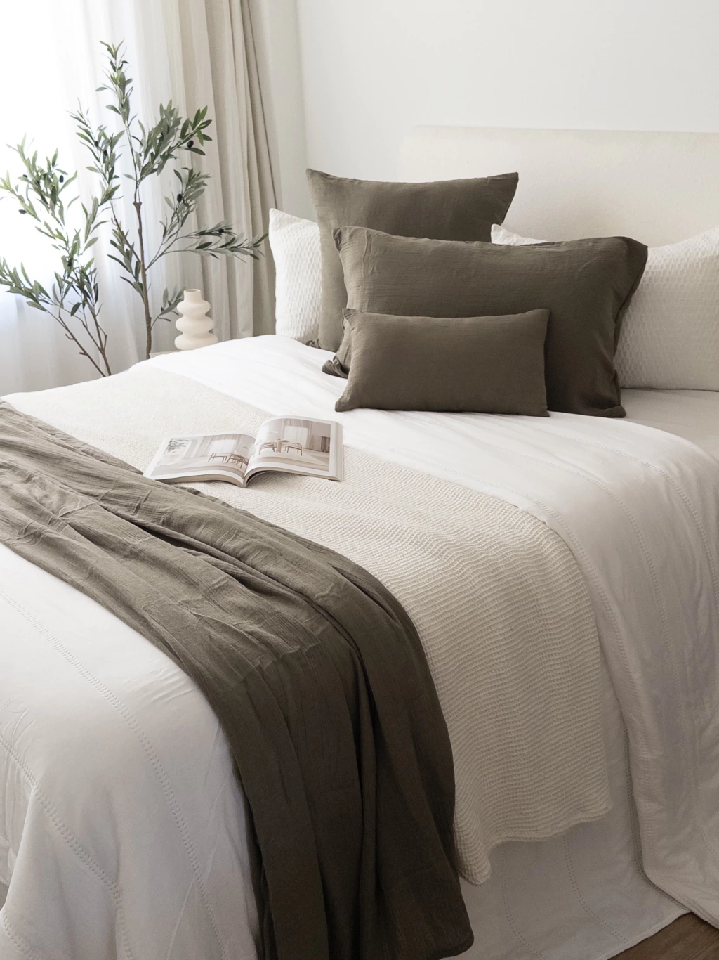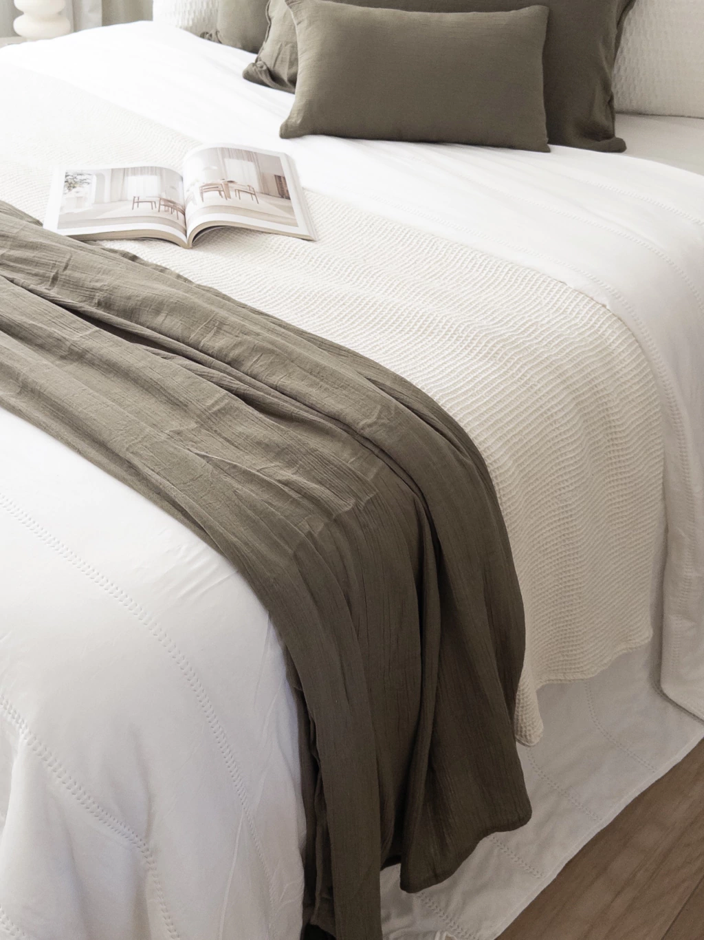 Piel de cama color verde musgo su tamaño amplio lo hace ideal para camas grandes, es perfecto para sumar color a tu habitación. Puede ser combinado con el set x3 fundas filipa verde musgo.