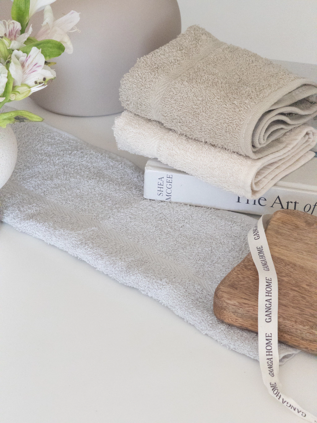 Set x3 toallas de mano en colores gris perla, natural y verde claro. Estas toallas son perfectas para cualquier decoración, brindando suavidad y absorción excepcionales. Cada set incluye tres toallas de alta calidad, diseñadas para durar y ofrecer confort en cada uso.