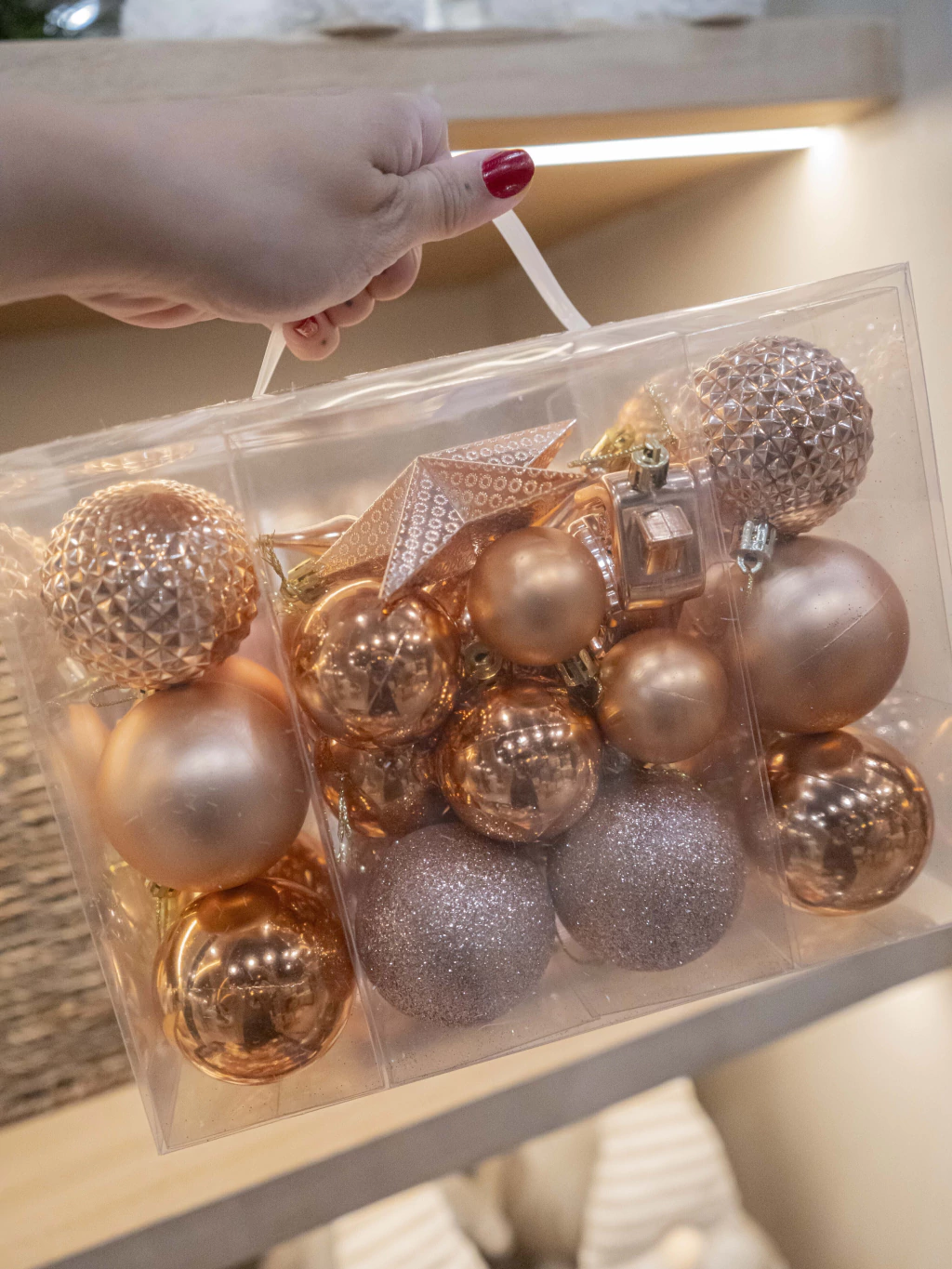 Embellece tu árbol navideño con el Set x31 Esferas. color Rose Gold Cada esfera, de 6 cm de diámetro, está elaborada en plástico duradero, asegurando una decoración elegante y resistente.