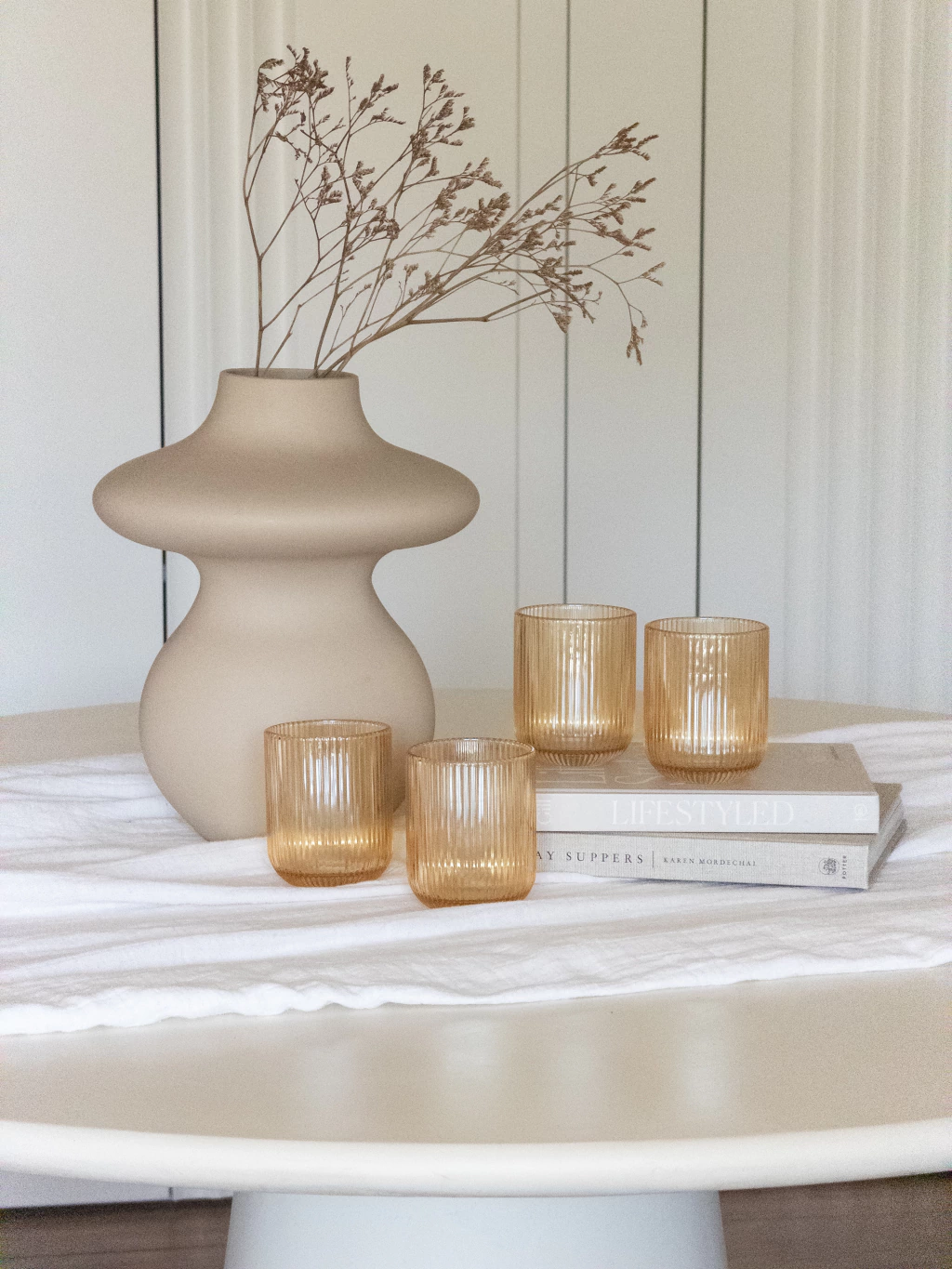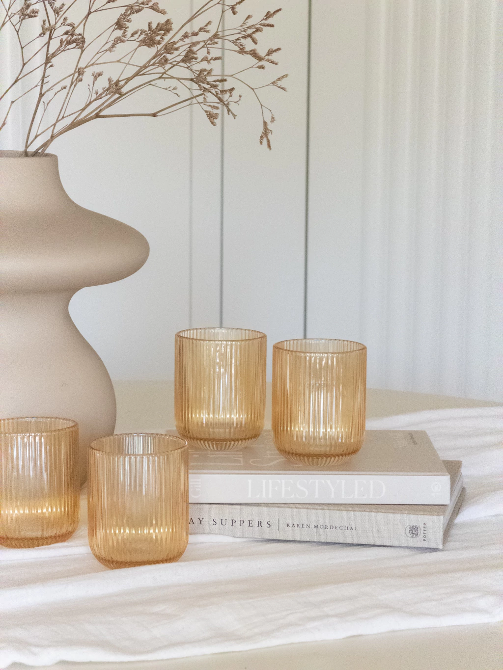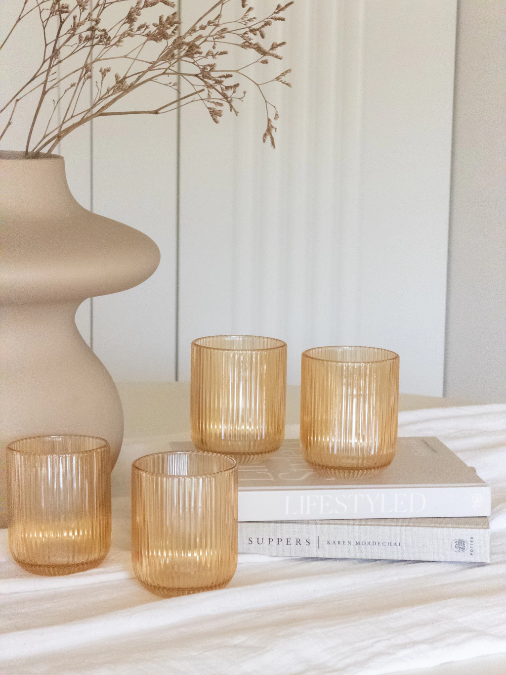 Set x6 Vasos espejados color ambar con relieve. Perfectos para cualquier ocasión, desde comidas familiares hasta celebraciones especiales. Duraderos y versátiles, son un complemento ideal para cualquier cocina. Medidas aproximadas: 7x9 cm Capacidad: 270 ml. Las imágenes son a modo de ilustración.