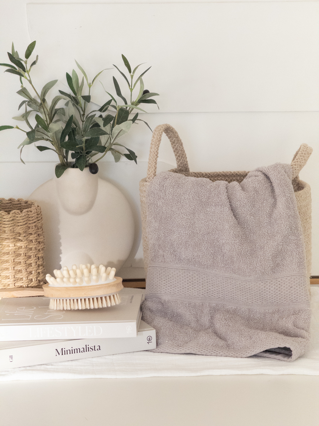 Toallón Gris con excelente capacidad de absorción, perfecto para un secado rápido y eficiente después de la ducha. Fabricado con 75% algodón, 25% poliéster.