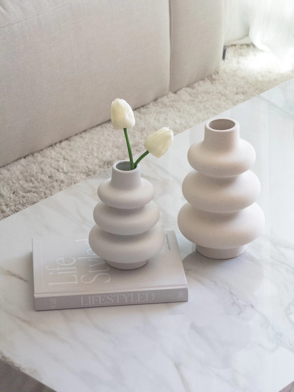 Vasija decorativa color natural, ideal para realzar cualquier ambiente de tu hogar. Su diseño atemporal y acabado artesanal la convierten en una pieza decorativa única.